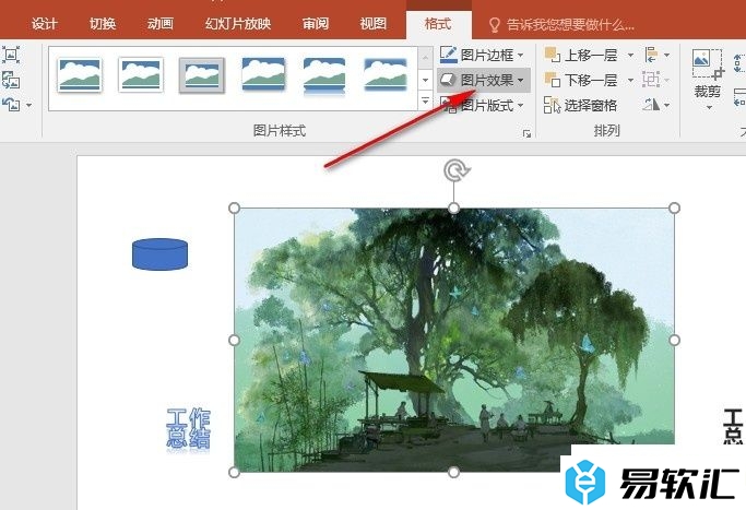 3、第三步,打开“格式”工具之后,我们再在其子工具栏中找到“图片效果”工具,点击打开该工具