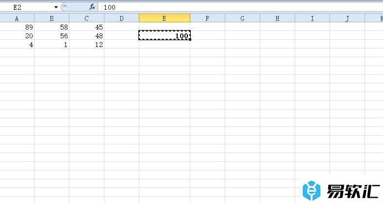 2.接着用户在空白单元格中输入数字100,并ctrl c将其复制下来