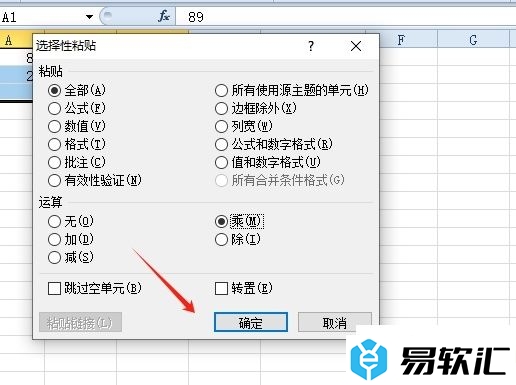 4.在打开的选择性粘贴窗口中,用户在运算板块中勾选乘选项就可以了