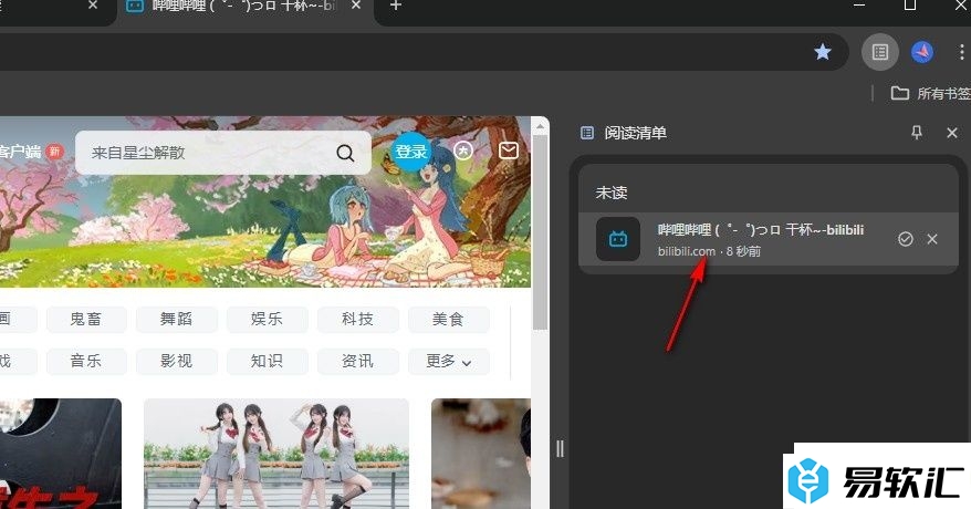 5、第五步,点击“向阅读清单中添加标签页”选项之后,我们再重复第三、四步操作,然后打开“显示阅读清单”选项,接着在阅读清单列表中就能看到当前网站了
