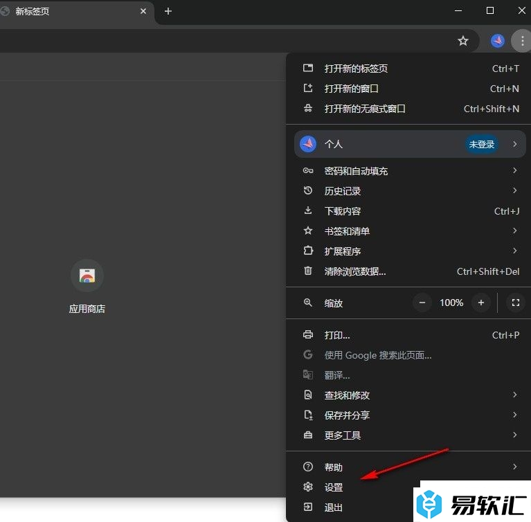 2、第二步,在“自定义及控制Google Chrome”选项的下拉列表中,我们找到“设置”选项,点击打开该选项
