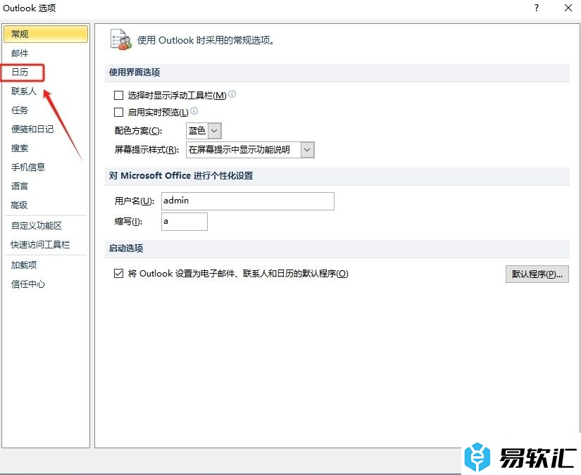 2.进入到选项窗口中,用户将左侧的选项卡切换到日历选项卡上