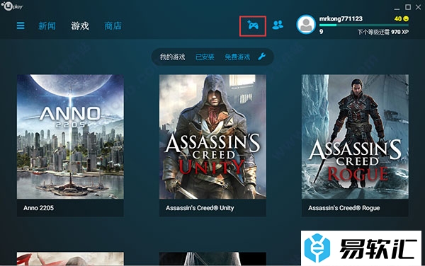 6、登录UPLAY后,点击上方的游戏手柄小图标。
