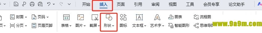 2.接着在页面上方的菜单栏中点击插入选项,将会显示出相关的选项卡,用户选择形状选项