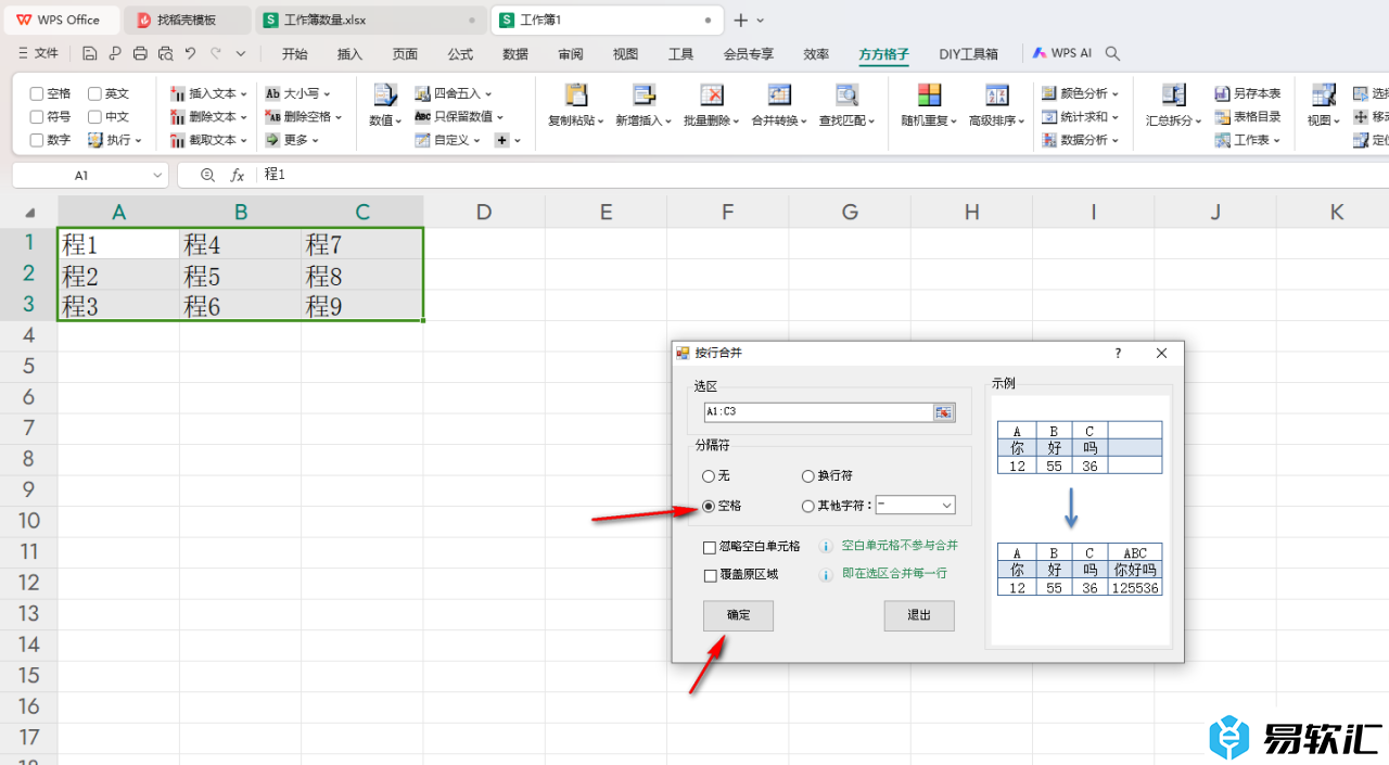 在wps中,想要进行数据的编辑设置的时候,有些情况下需要对我们的数据内容进行快速的合并操作,你可以将相同内容进行合并,或者是安装一个方方格子插件,我们选择合并的项目会更多,比如进行按列合并、按行合并等,且都是可以免费使用的,当你想要将某些行内容进行合并在一起,那么就可以找到方方格子下的合并转换功能,将按行合并功能点击启用即可进行相应的操作,下方是关于如何使用WPSexcel设置按行合并的具体操作方法,如果你需要的情况下看看方法教程,希望小编的方法教程对大家有所帮助。